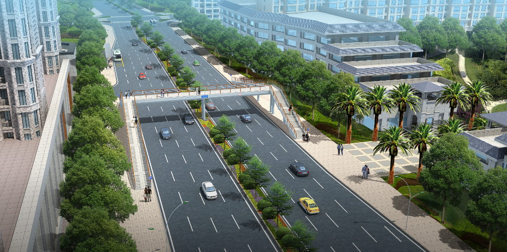 水韻華都人行天橋位于龍騰路水韻華都南側(cè),橫跨龍騰中路。橋長(zhǎng)34.4米,寬3.6米,下部結(jié)構(gòu)采用鉆孔灌注樁和擴(kuò)大基礎(chǔ),上部結(jié)構(gòu)采用鋼結(jié)構(gòu),項(xiàng)目總投資約400萬元。項(xiàng)目于2016年4月開工,8月底竣工。項(xiàng)目建成后,可有效保障該片區(qū)行人過街的安全,提高人們出行效率。