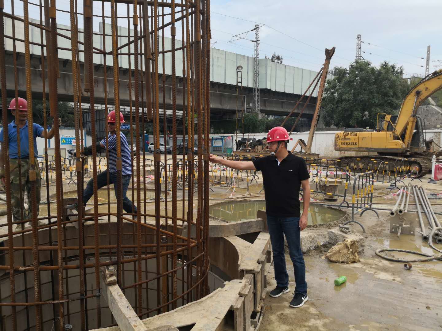 427日,在龍巖火車站片區(qū)路網(wǎng)項(xiàng)目工地,犀牛路二期正在進(jìn)行樁基、承臺(tái)和立柱施工,站前高架橋正在進(jìn)行墩柱和混凝土現(xiàn)澆梁施工,一派熱火朝天的建設(shè)場景39歲的龍巖國資企業(yè)干部孔華剛剛榮膺2018年“福建省勞動(dòng)模范”,從福州開完表彰會(huì)載譽(yù)歸來的顧不上休息,馬不停蹄地深入站前高架橋和犀牛路二期項(xiàng)目一線,檢查安全文明施工情況,督促項(xiàng)目施工進(jìn)度。