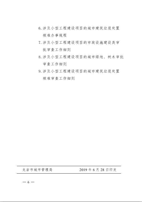 龍巖市城市管理局關(guān)于印發(fā)工程建設(shè)項目審批制度改革有關(guān)政策的通知(龍城[2019]91號)